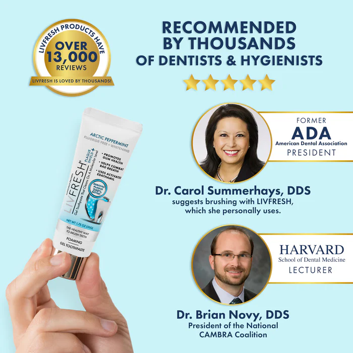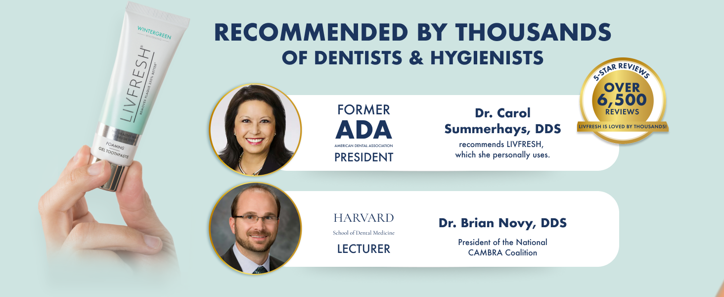 - TRUSTED & RECOMMENDED - Thousands of dental professionals, including the former President of the American Dental Association (ADA) and the former President of the American Academy of Periodontology (AAP), use and recommend LIVFRESH to their patients. Clinical Professors and Lecturers from Harvard, UCLA, UC Irvine, and other top institutions actively support LIVFRESH.