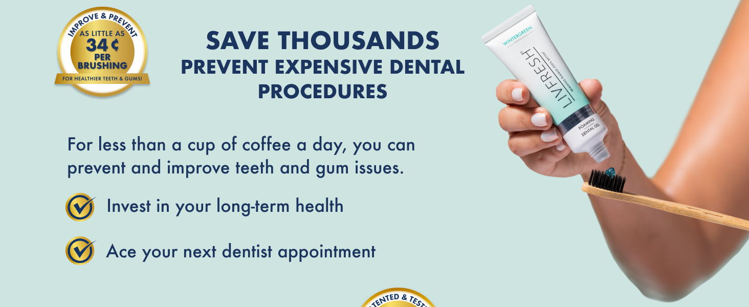 Brushing with LIVFRESH can help you save thousands by improving your oral health and preventing expensive dental procedures.
